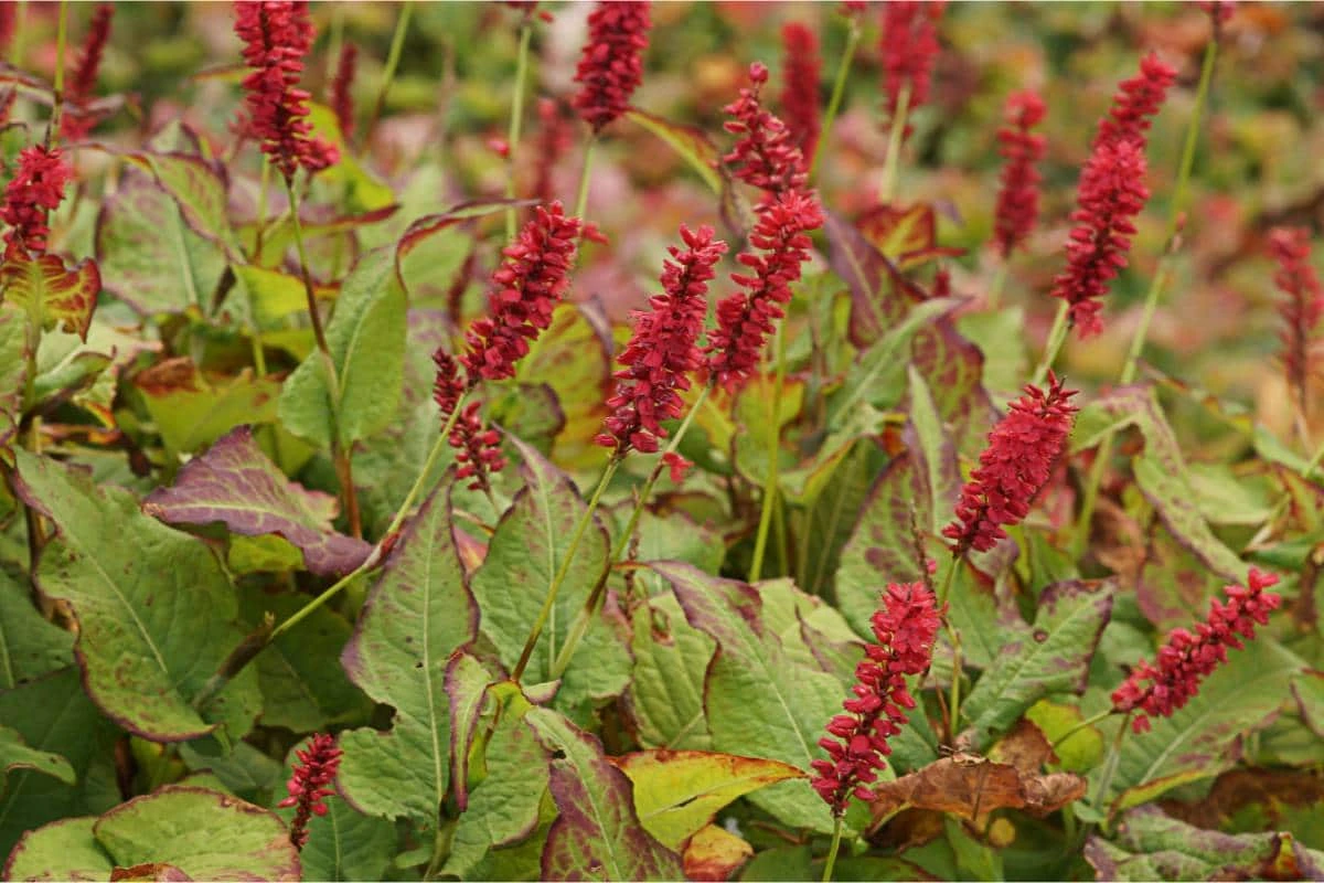 Kerzenknöterich ‚J. S. Caliente‘ (Bistorta amplexicaulis ‚J. S. Caliente‘) weist im Gegensatz zu anderen Sorten des Kerzenknöterichs keinen ungehemmten, sondern einen eher gedeckten Wuchs auf. Er dient daher als ideales Gewächs für Übergänge. Mit seinem ausladenden, rhizombildenden Wuchs wird er bis zu 100 Zentimeter hoch und etwa 60 Zentimeter breit. Seine ährenförmigen, roten Blüten zeigen sich zwischen Juli und Oktober. Ihr leichter Duft lockt Insekten aller Art an. Die Blätter des Kerzenknöterichs sind breitlanzettlich und gewellt. Ihre leicht rötliche Herbstfärbung macht sie in der bunten Jahreszeit zu tollen Hinguckern.