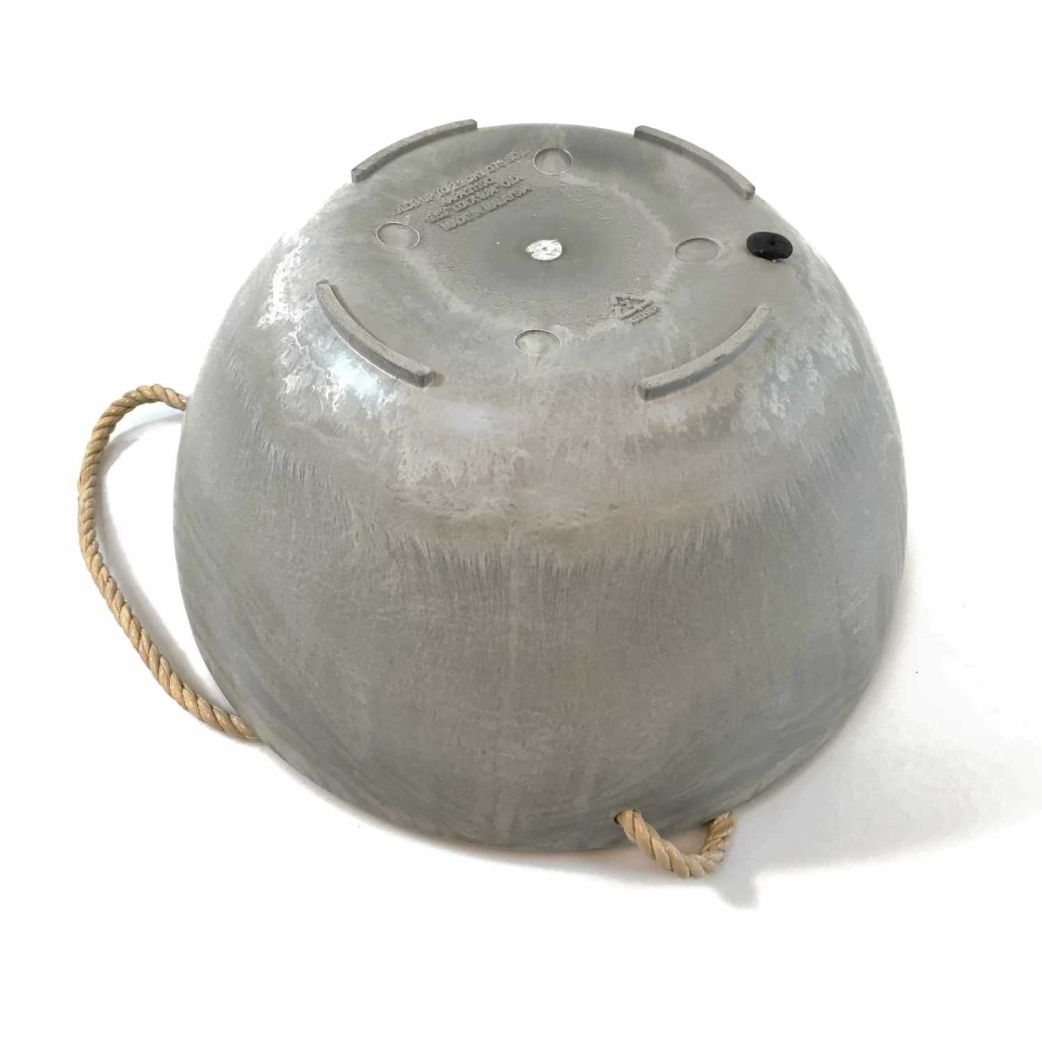 Das Ausgangsmaterial der Blumenampel besteht aus einem Gemisch aus Resinharz (Gießharz) und recyceltem Kunststoff. Um die attraktive Optik des Pflanzgefäßes zu erhalten, ist das Basismaterial mit Natursteinpulver versetzt. Dadurch entsteht ein widerstandsfähiges, leichtes und einzigartiges Produkt in Steinoptik.