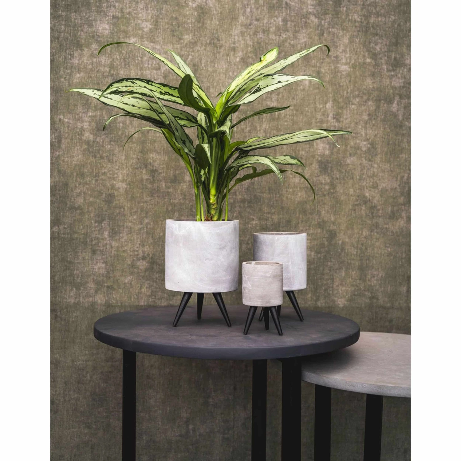 Dieser fröhliche und schlichte Blumentopf Imre kommt auf kleinen Füßen daher. Imre ist aus Zement gefertigt. Ein cooler Topf für deinen Kaktus oder für eine kleine Hängepflanze.