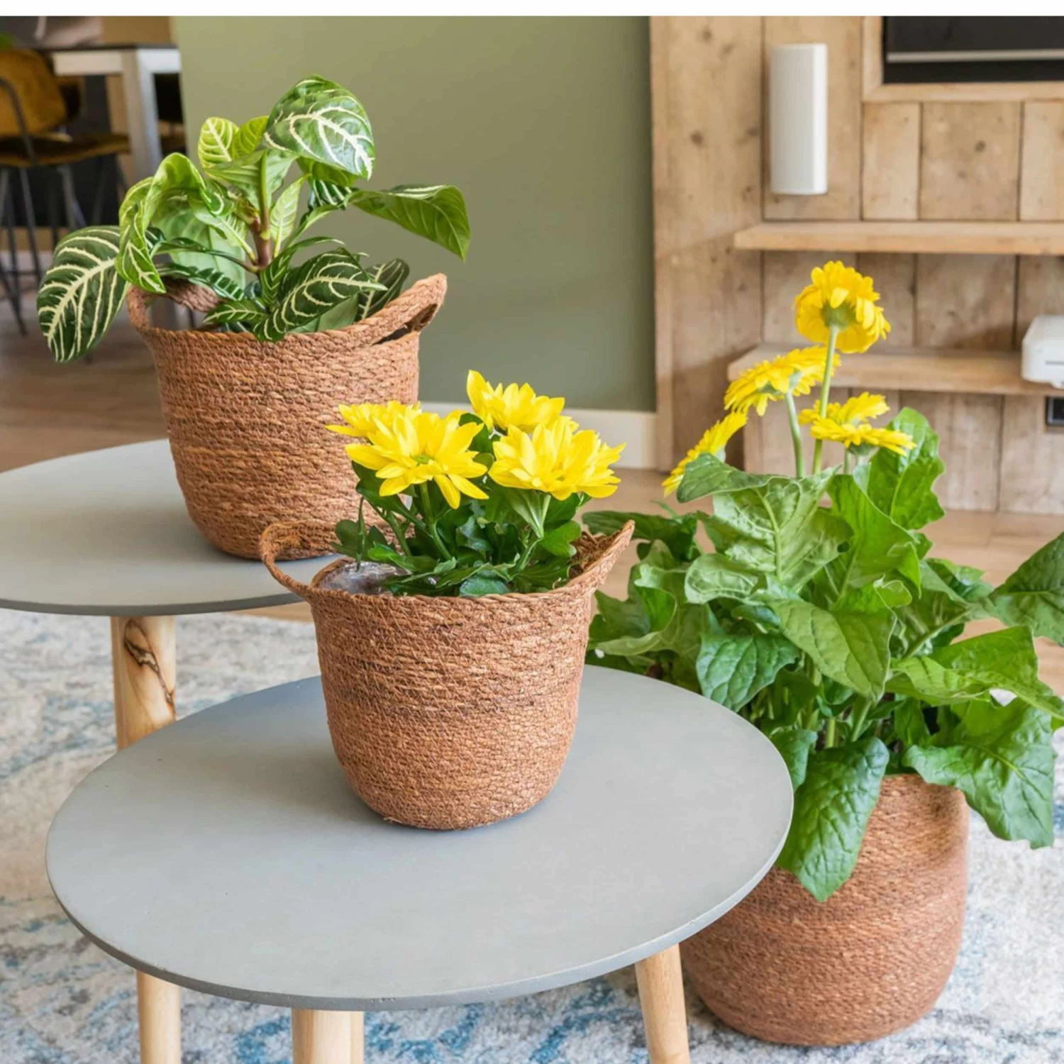 Der Übertopf Nelis ist das neue Zuhause für deine Pflanzen. Aus Schilf hergestellt hat der Pflanzenkorb einen natürlichen Look. Innen ist er mit einer Folie ausgekleidet, damit Gießwasser nicht austreten kann. Das Trendgefäß hat zwei kleine Henkel an der Seite, sodass du deinen Pflanzen einfach umstellen kannst. Kombiniere Nelis mit natürlich wirkenden Gefäßen in Beton-Optik und gestalte deinen persönliche Urban Jungle.