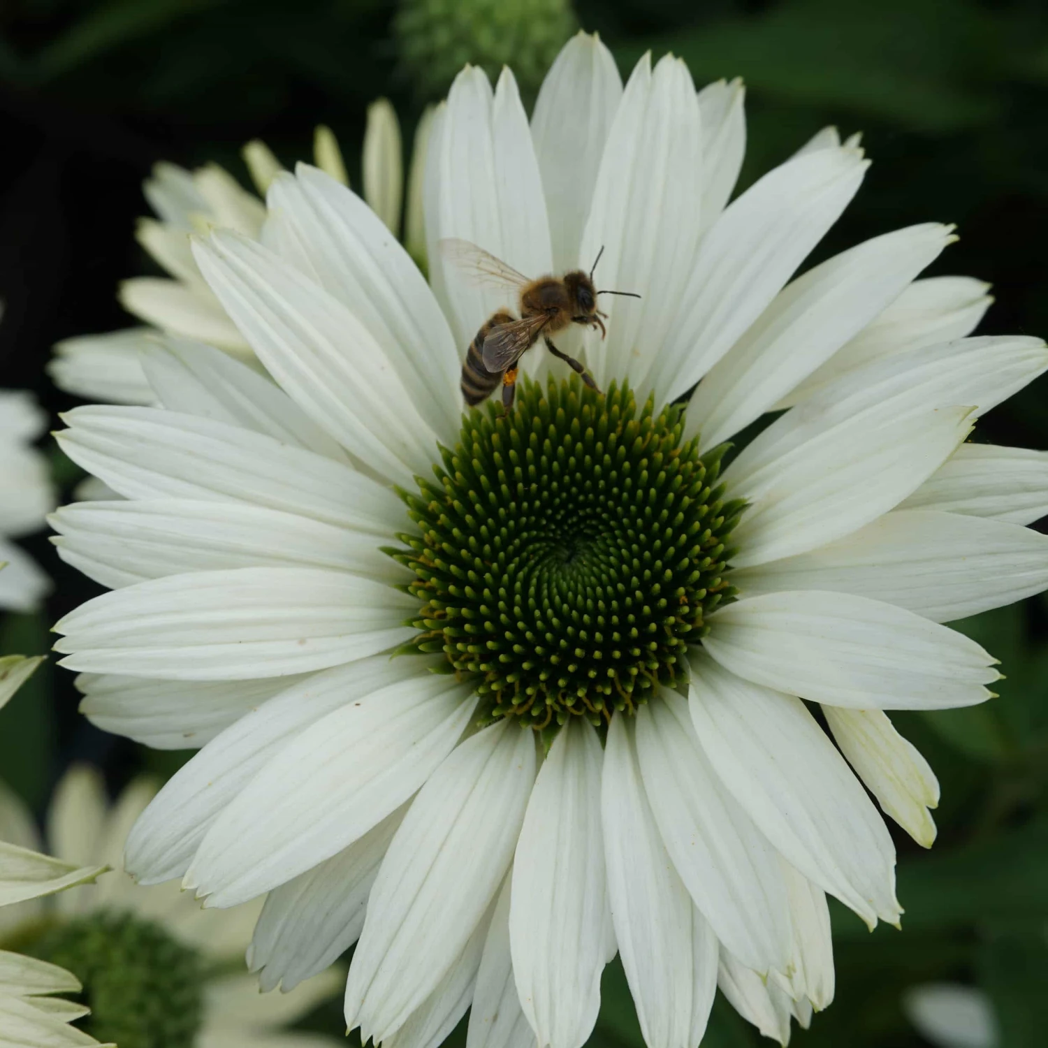 Mit ihrem kompakten Wuchs fügt sich Echinacea purpurea ‚Virgin’® harmonisch in den Garten ein. In zwei Reihen formen die weißen Blütenblätter einen dichten Kranz um die grüne Blütenmitte. Der Weiße Sonnenhut wird nicht nur als Blickfang, sondern mit seinen immunstärkenden Eigenschaften auch als Heilpflanze genutzt und dient ebenso als wertvolle Nahrungsquelle für Bienen, Schmetterlinge und andere nützliche Insekten.