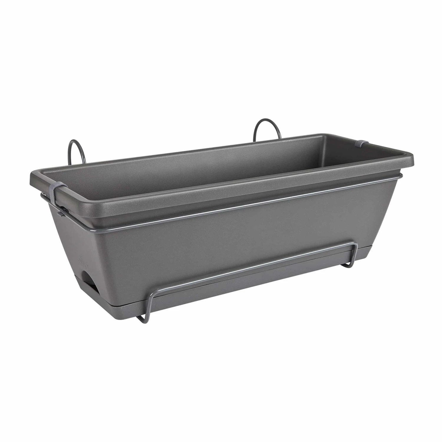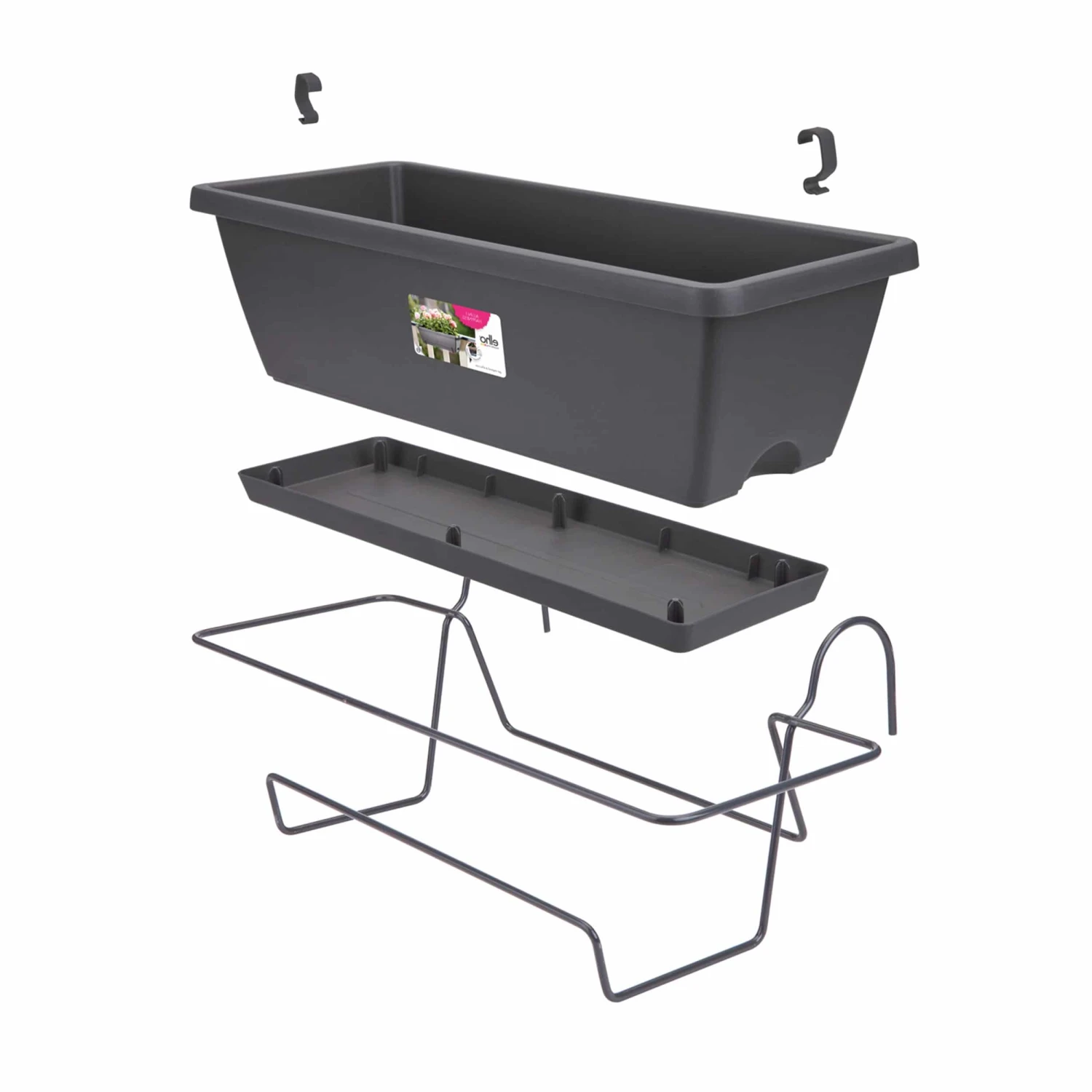 - komplettes Set aus Balkonkasten, integriertem Untersetzer und Halter