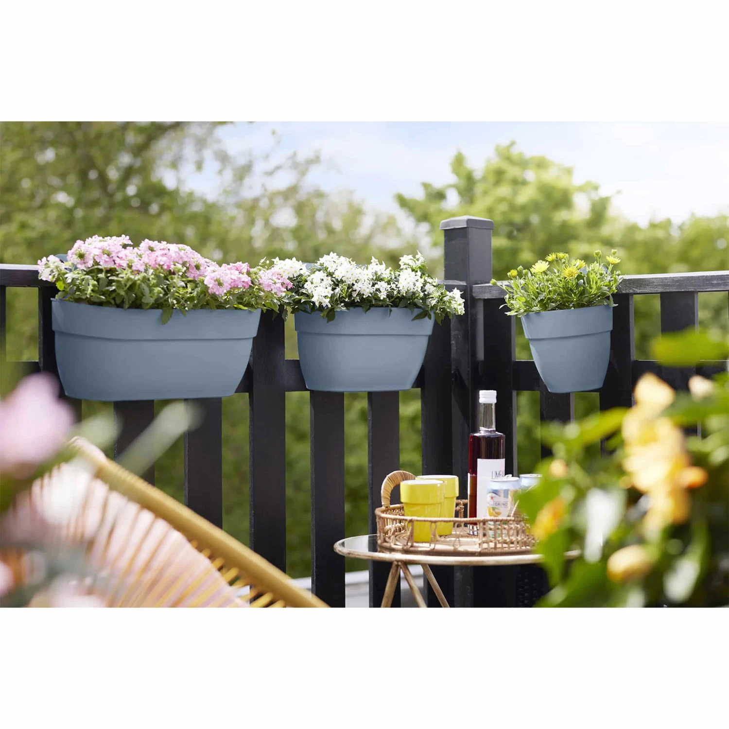 Erwecke deinen Balkon zum Leben mit dem fröhlichen Hängeblumentopf von elho. Dank der praktischen Haken kannst du ihn im Handumdrehen am Geländer (bis 6,5 cm Breite) befestigen und genauso schnell wieder abnehmen, wenn du ihn neu bepflanzen möchtest. So bleibt dein Balkon immer frisch und bunt.
