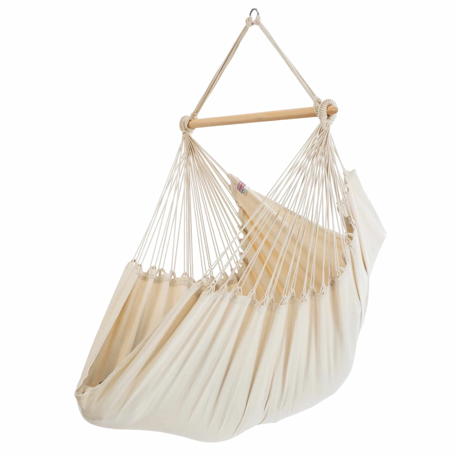 Dieser Hängesitz ist in Komfort und Größe nicht zu übertreffen. Bei dieser Stofflänge schmiegt er sich dem Körper rundum an. So können Sie vollkommen entspannen und sich von einem stressigen Tag erholen.