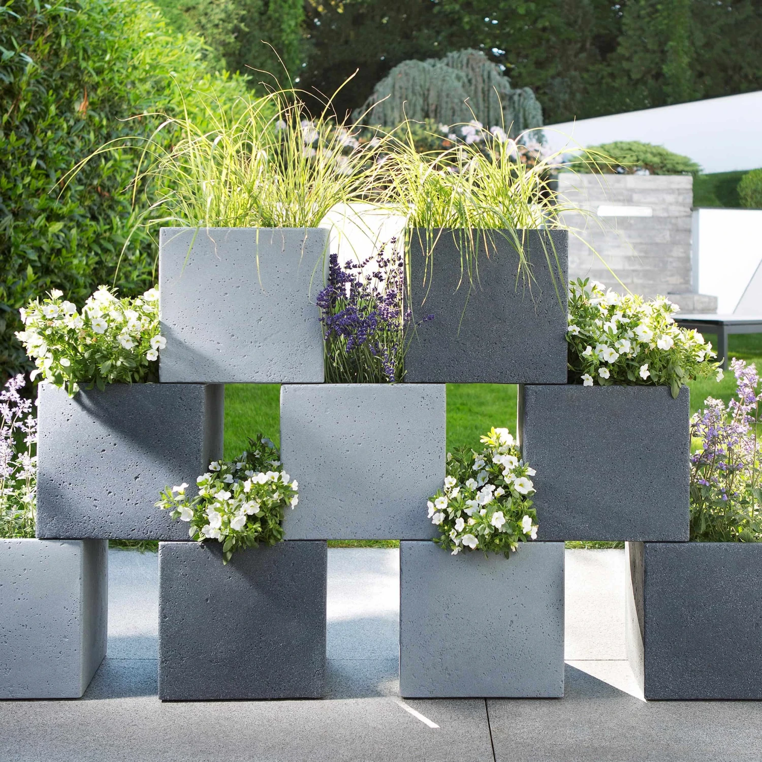 Das C-Cube Pflanzgefäß ist der kreative Allrounder unter den Blumenkübeln. Der quadratische Pflanzkübel ist sowohl einzeln ein Hingucker auf Balkon, Terrasse oder im Garten – oder Du„baust“ ein blühendes Mäuerchen, eine bepflanzte Treppe oder andere beeindruckende Ideen aus den robusten, dickwandigen Gefäßen.