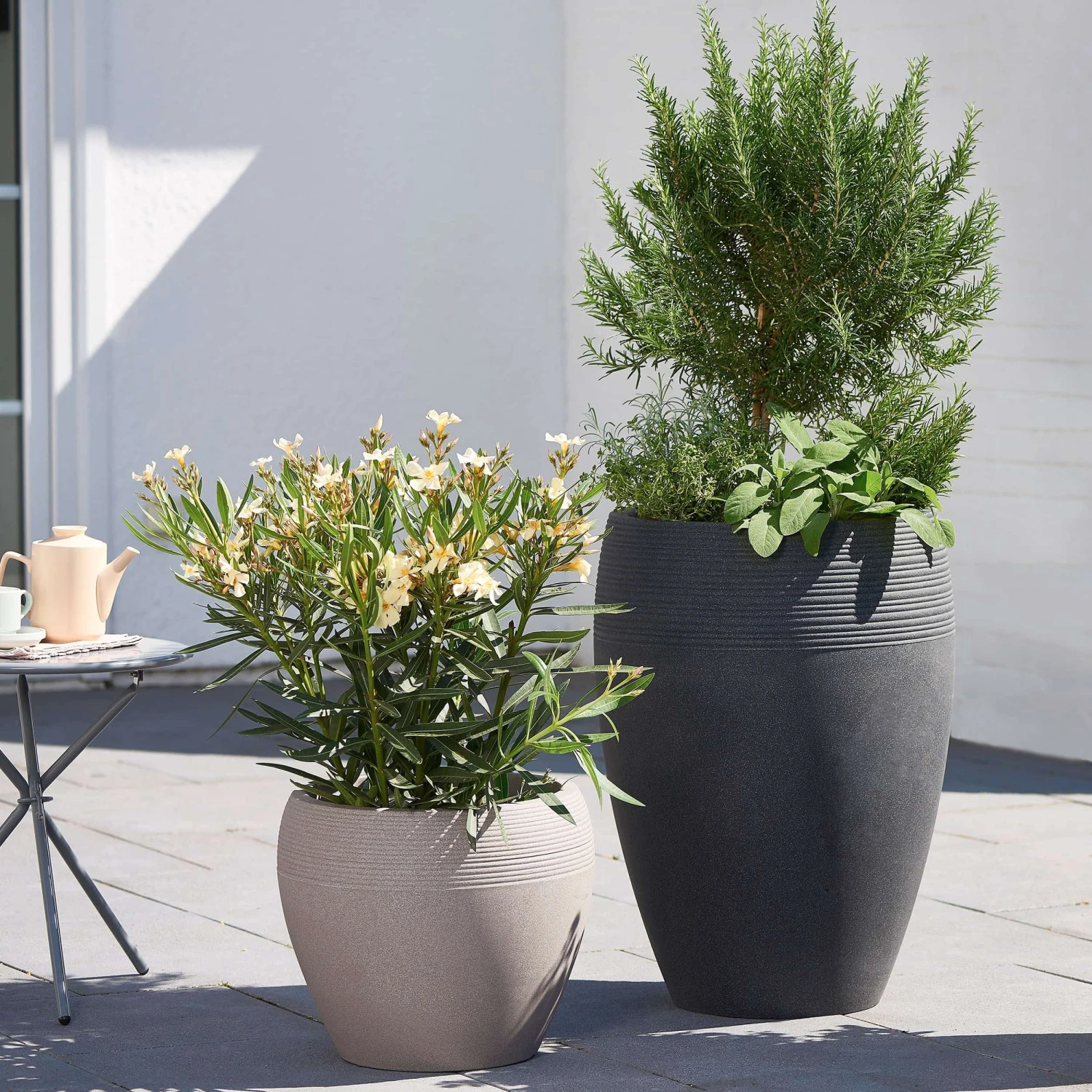 Dezentes Rillen-Relief, bauchige Form, dickwandiger Rand: Die Pflanzkübel Serie Lineo unterstreicht den „Zurück zur Natur“-Trend im Garten und auf Terrasse und Balkon. Die natürliche Farbgebung der Blumenkübel passt zu jeder Pflanze – so wird aus jedem Garten eine entspannende Wohlfühloase.