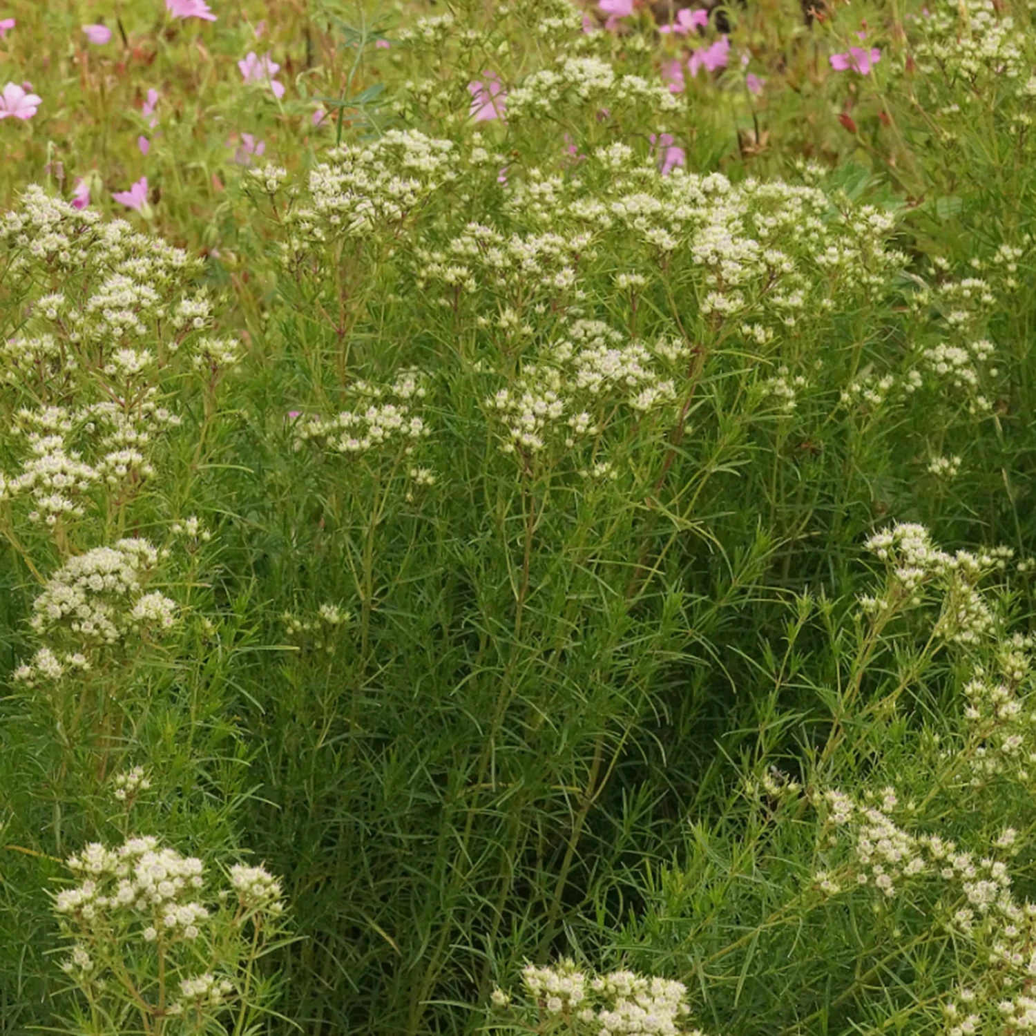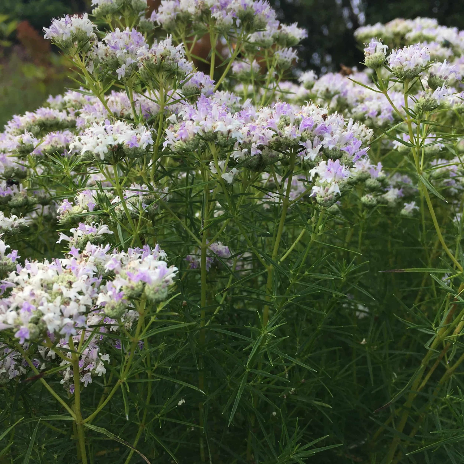Von Juli bis September erfreut uns die Bergminze (Pycnanthemum tenuifoliumun) mit ihren duftenden, weißen bis hellpurpurfarbenen Blüten. Der Wuchs der Bergminze ist buschig, aufrecht und horstbildend. Unter idealen Bedingungen kann sie eine Höhe von 70 Zentimetern und eine Breite von bis zu 60 Zentimetern erreichen.