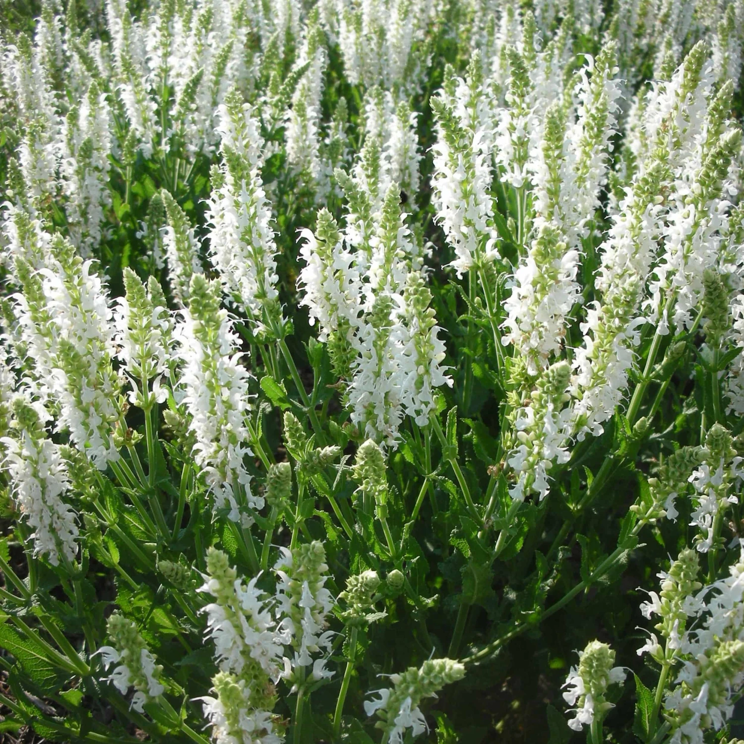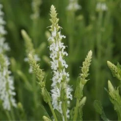 Der Steppen-Salbei ‚Adrian‘ (Salvia nemorosa) zieht Insekten wie Bienen und Schmetterlinge mit seinen weißen Lippenblüten magisch an. Für uns Menschen duften – insbesondere bei Reibung – seine Blätter vorzüglich. Der Sonnenanbeter wünscht sich eine lockere, mäßig frische und nährstoffreiche Erde, aus der seine Kerzenähren buschig und aufrecht emporwachsen können. Wird dieser Salbei nach der ersten Blüte auf 10 cm Höhe zurückgeschnitten, dankt er es mit einer prächtigen Nachblüte – doppelte Blühfreude garantiert.