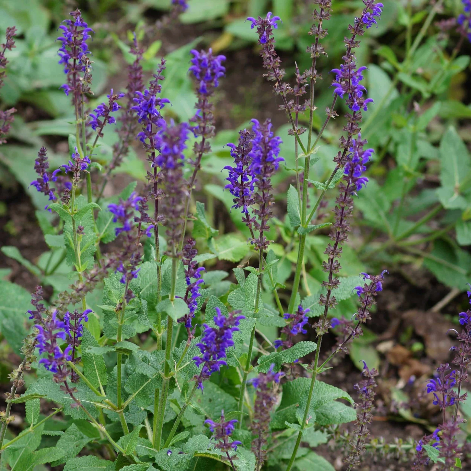 Der Steppen- oder Blüten-Salbei ‚Viola Klose‘ (Salvia nemorosa ‚Viola Klose‘) zeichnet sich besonders durch seine ährenförmigen, tief violetten Blüten aus, die den gesamten Sommer über, von Mai bis September, blühen. Die hübschen Blüten und ihr außergewöhnlicher Duft machen diese Staude zu einem wahren Insektenmagneten. Die tiefgrünen Blätter der Sorte ‚Viola Klose‘ sind rau, runzelig und am Rand fein gezähnt. Auch sie duften ausgezeichnet und werden am Ende der Saison abgeworfen. Dieser winterharte Steppen-Salbei wird bis zu 40 Zentimeter hoch und breit.
