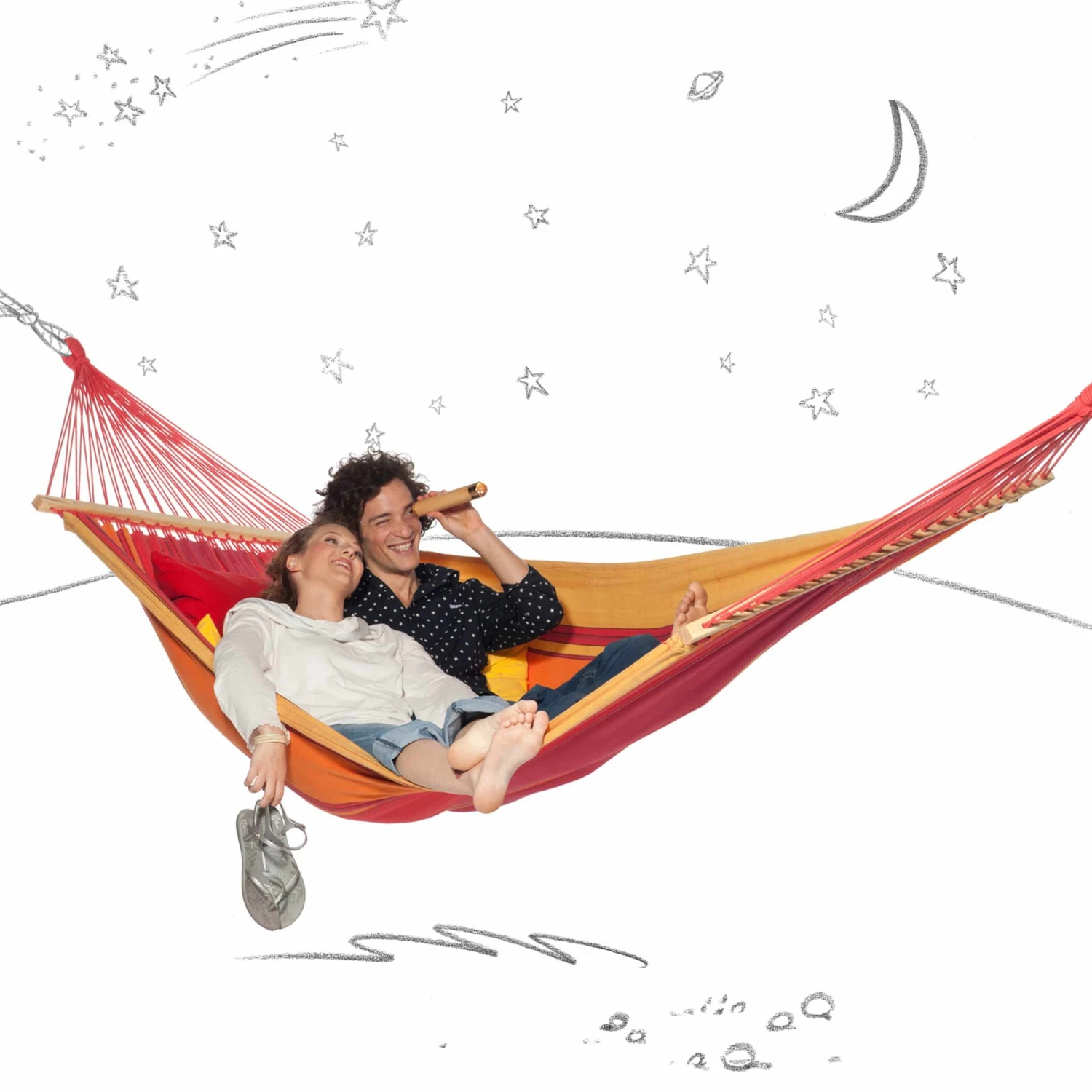 Durch die 110cm breiten Spreizstäbe erhält die Hängematte FAMOSA eine leichte Spannung, sodass das Einsteigen leichter fällt als bei einer herkömmlichen Hängematte. Wenn Sie ein Buch oder eine Zeitschrift lesen wollen, ist die Stabhängematte perfekt geeignet, da der Stoff nicht durchhängt sondern angenehm stützend wirkt. Ihr Rücken wird somit auf wohltuende Art entlastet.