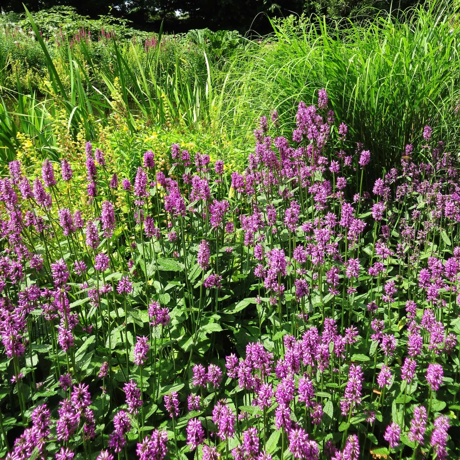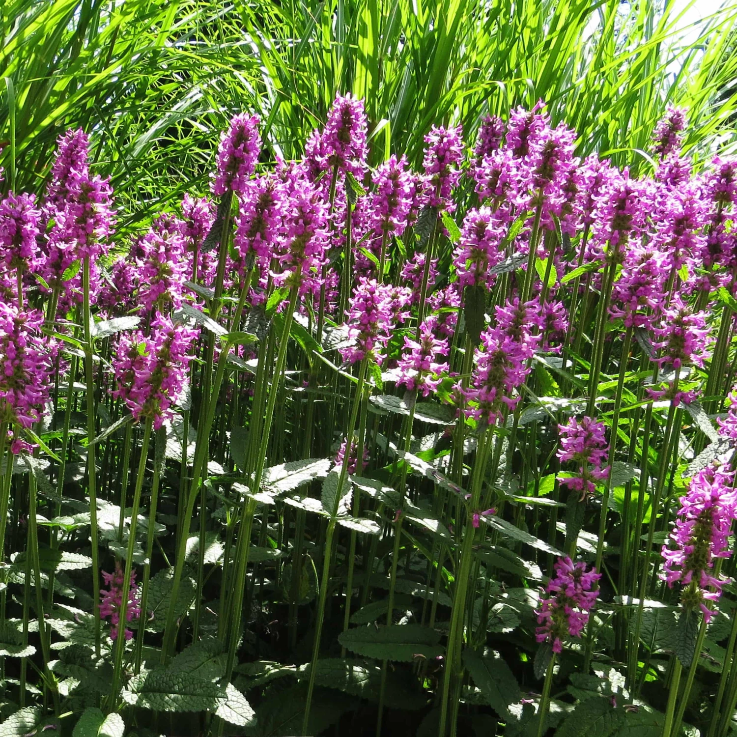 Der Zottige Ziest ‚Hummelo‘ (Stachys monieri), auch Dichtblütiger Ziest genannt, hat seinen weniger schmeichelhaften Namen den zotteligen Blütenständen zu verdanken. Diese zeigen sich von Juli bis September in einem Tiefrosa und bilden so einen tollen Farbkontrast zu den mattgrünen Blättern. Vor allem Bienen, Hummeln und Schmetterlinge werden davon magisch angezogen – der verströmte Duft tut sein Übriges.